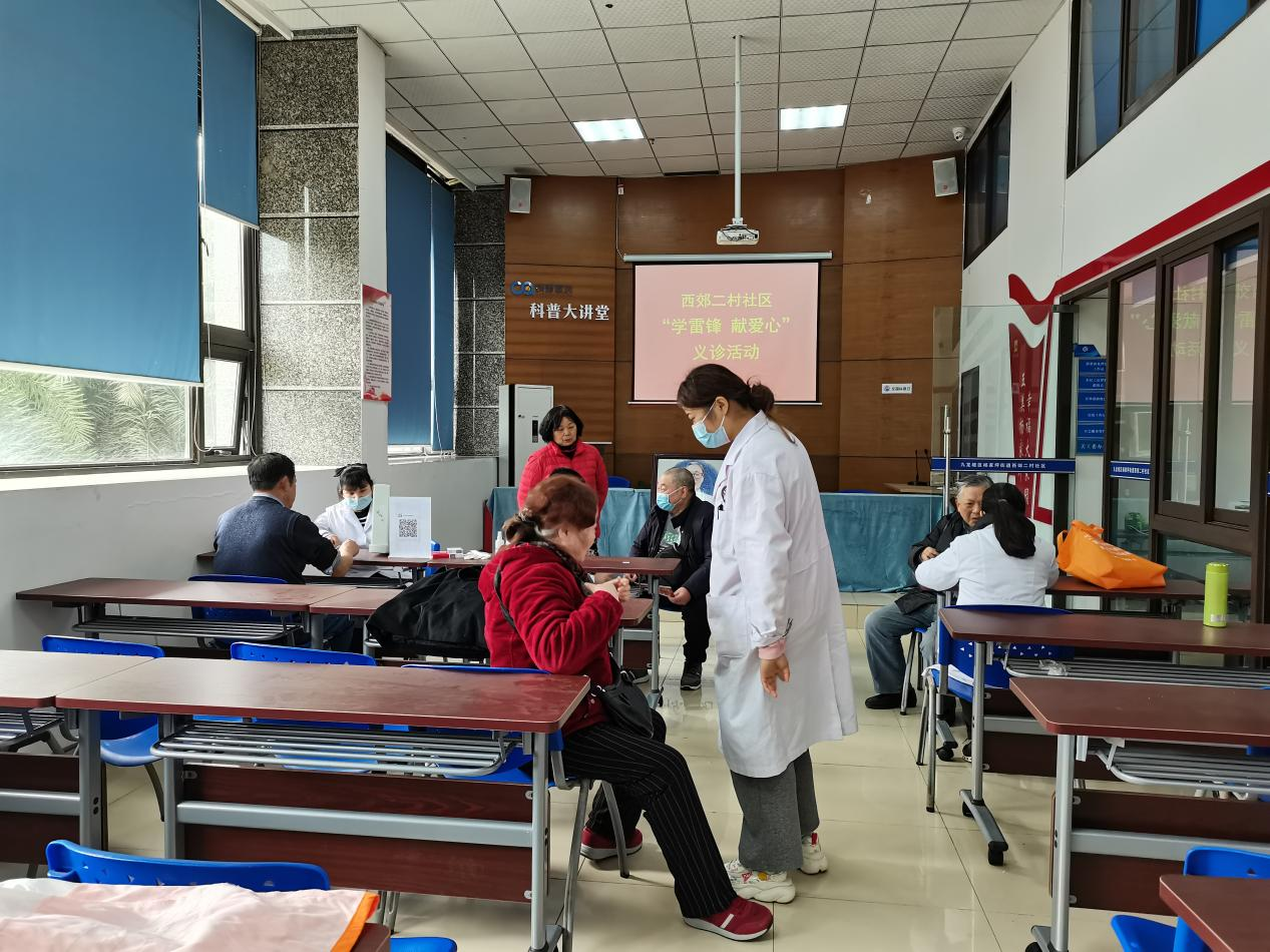 杨家坪街道西郊二村社区携手重庆铭医堂开展“学雷锋 献爱心”义诊活动