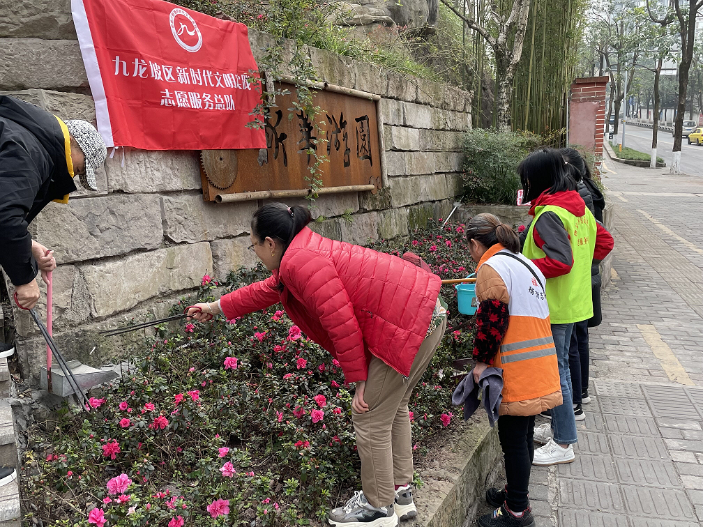 杨家坪街道前进路社区新时代文明实践站开展“美化家园,环保有我”志愿服务活动